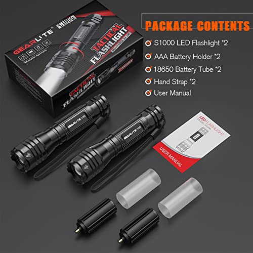 Specification: GEARLITE Lampe Torche LED Ultra Puissante 2 Pièces, 5000 Lumens 5 Modes Mini Lampe De Poche LED Ultra Puissante, IP65 Étanche Zoomable Lampe Tactique Aluminium pour Enfant Camping Urgences