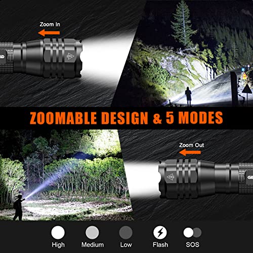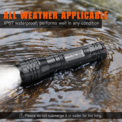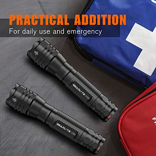 GEARLITE Lampe Torche LED Ultra Puissante 2 Pièces, 5000 Lumens 5 Modes Mini Lampe De Poche LED Ultra Puissante, IP65 Étanche Zoomable Lampe Tactique Aluminium pour Enfant Camping Urgences
