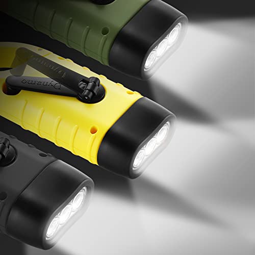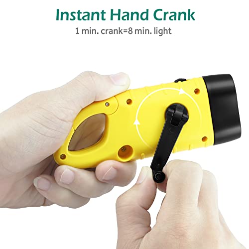 GeeRic Lot de 2 lampes de poche à manivelle, lampe de poche d’urgence LED rechargeable à énergie solaire, torche dynamo de survie pour sports de plein air jaune jaune