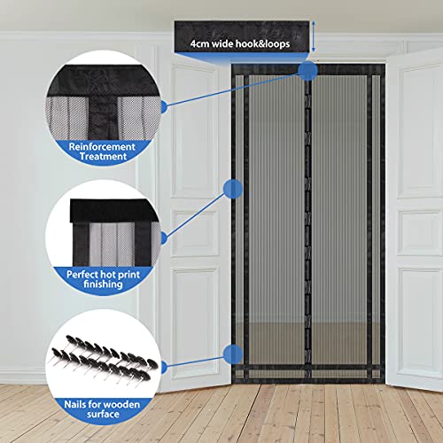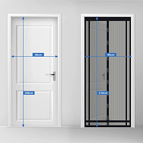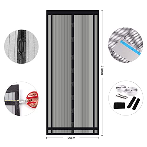 Sekey 90×210 cm Rideau magnétique anti-insectes Fermeture Automatique, (découpable en hauteur et largeur) ne nécessite aucun perçage et grâce au montage facile, Noir