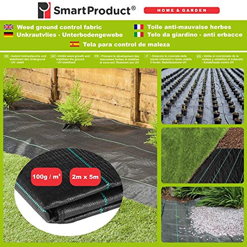 SmartProduct Bâche Anti Mauvaises Herbes en polypropylène tissé Durable, Tissu paysager à Haute perméabilité à l’Eau Anti-UV et Piquets de Fixation galvanisés 25x pour Jardin