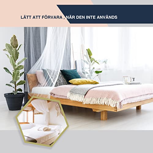 Installation facile et rapide grâce au matériel de montage fourni. Matériau très léger en 100 % polyester. Adapté à tous les lits. Protège efficacement contre les moustiques et autres insectes. Permet une excellente circulation de l’air grâce à la maille fine d’env. 1,2 mm.